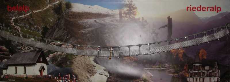 overbruggen de bergrivier "Massa" via een spectaculaire "Hängebrücke".